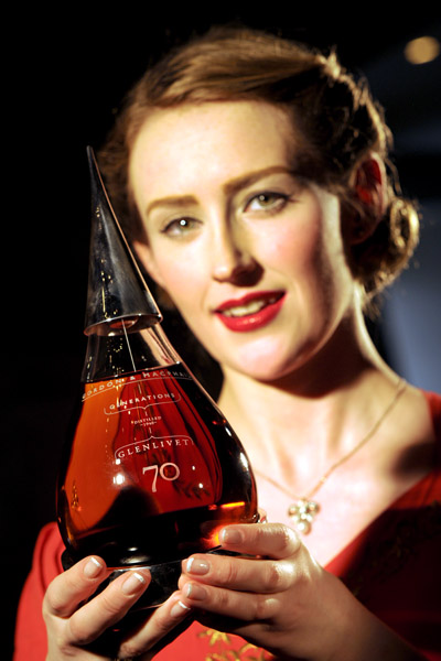 The Glenlivet 70 Years Old was matured in a First Fill Sherry Butt, and bottled at cask strength (45.9% ABV). Only 100 70cl bottles and 175 20cl bottles will be released in 2011. The 70cl decanter has a recommended retail price in the UK of £13,000 and the 20cl version has a recommended retail price in the UK of £3,200. It is the second in a series of extremely rare malt whiskies to be released by Gordon & MacPhail under its ‘Generations’ brand.